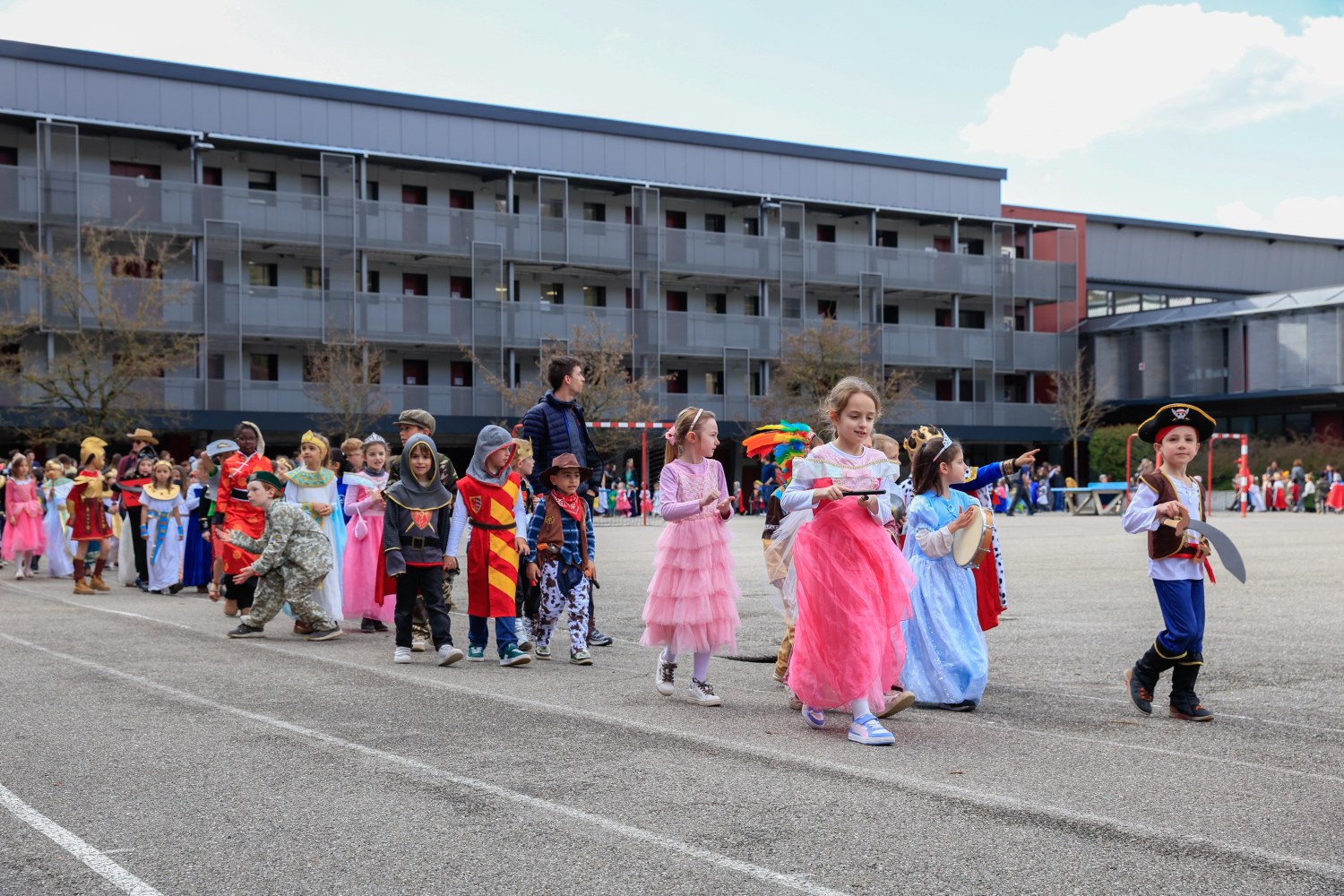 Le défilé dans la cour a été un moment joyeux et animé, apprécié de tous les élèves et enseignants.