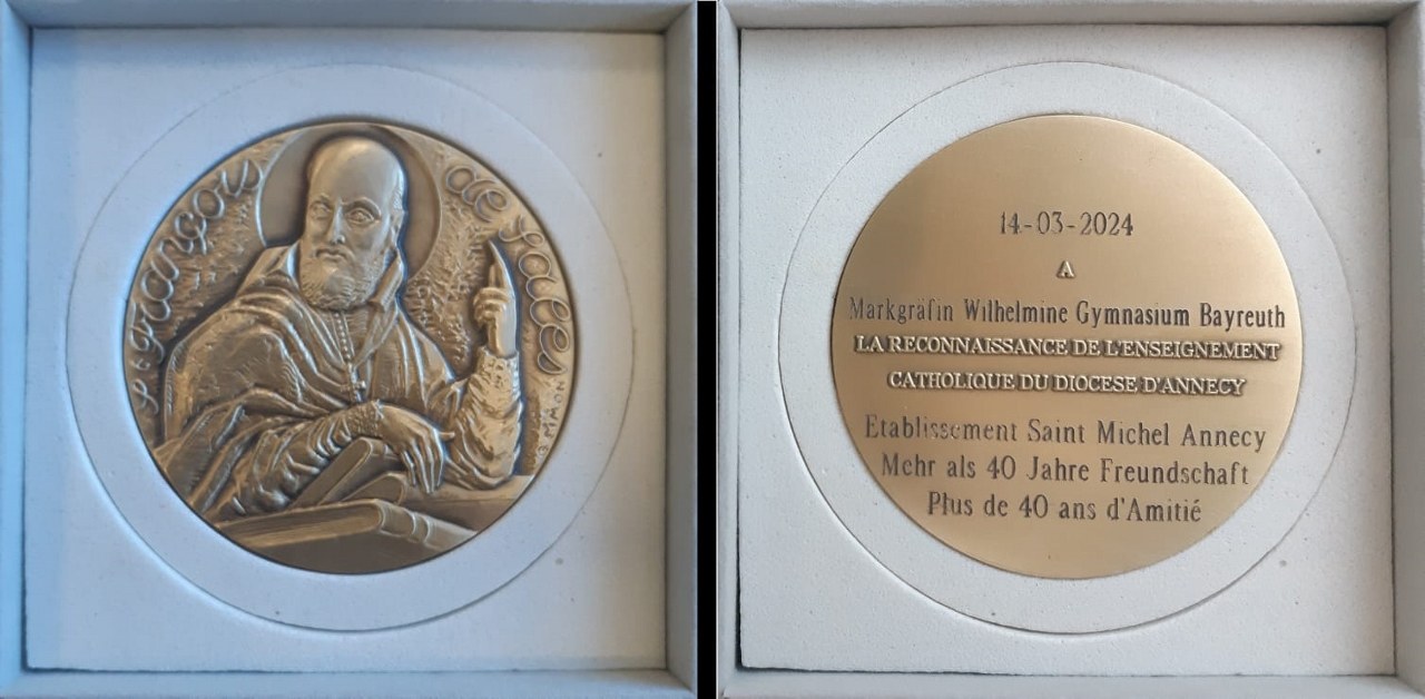 Cérémonie remise médaille de l'Enseignement Catholique pour fêter plus de 40 ans d'échange entre le MWG de Bayreuth et le Lycée Saint-Michel