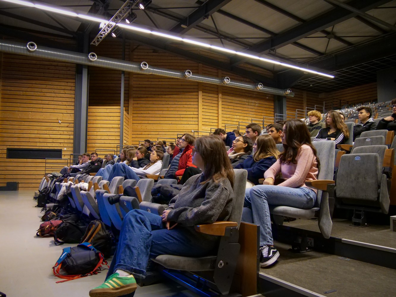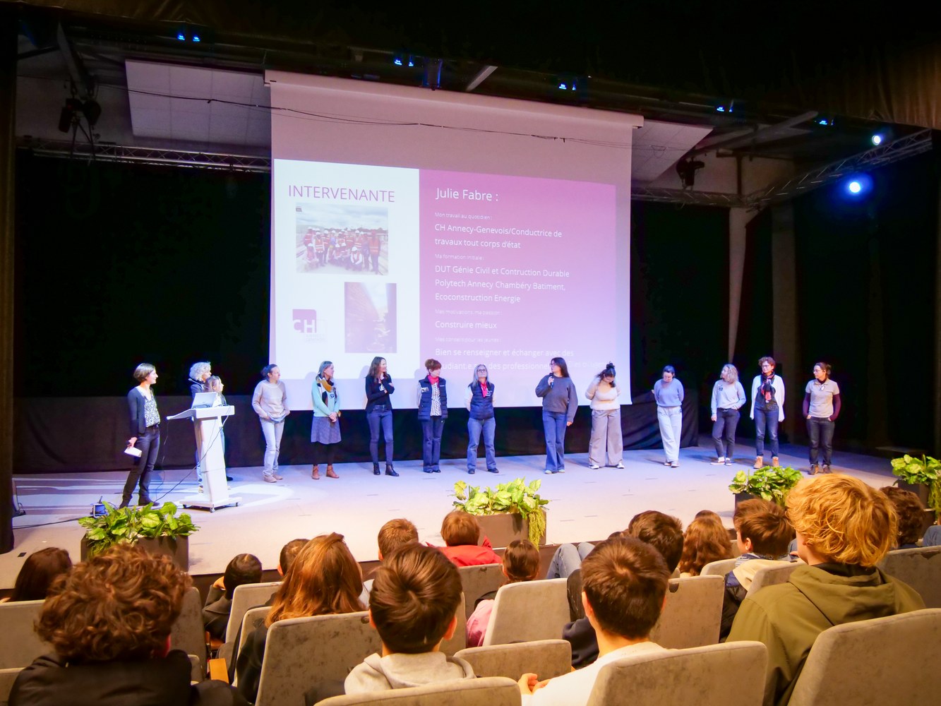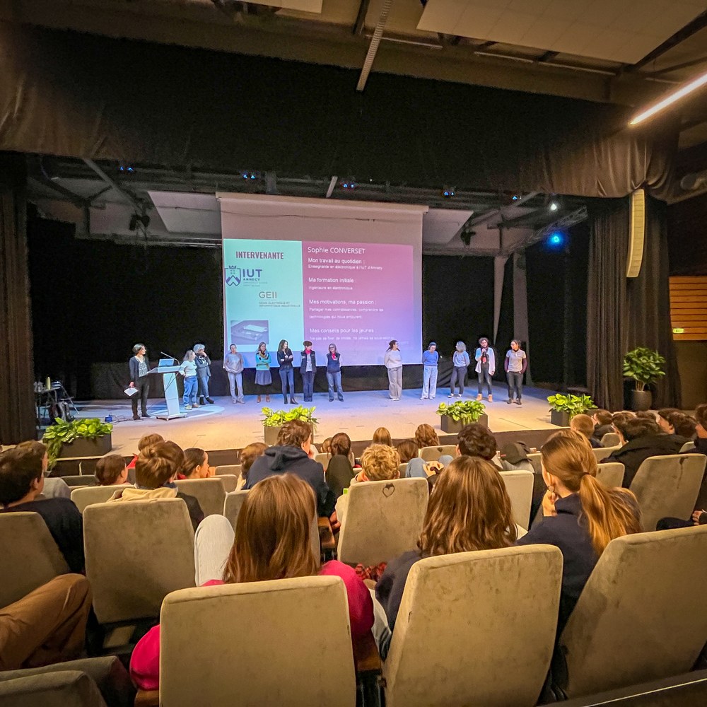 Nous avons accueilli 13 femmes : étudiantes, techniciennes, ingénieures et anciennes pilotes de chasse ! Ces professionnelles issues de secteurs variés ont échangé avec nos 65 lycéens et lycéennes.