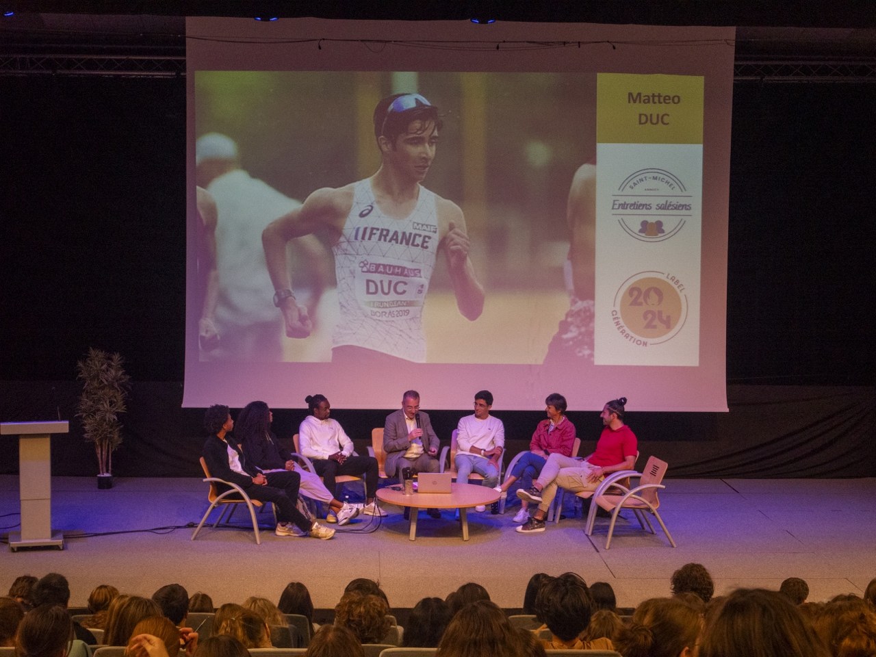 Pour ce 1er entretien salésien de l'année scolaire 2023-24 les élèves de3e et 1e on eu l'immense chance de rencontrer 5 athlètes internationaux et médaillés olympiques : Perrine Pelen, Marvin René, Cynthia Leduc, Matteo Duc et Raphaël Ribeiro Stojic.