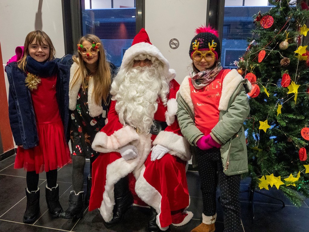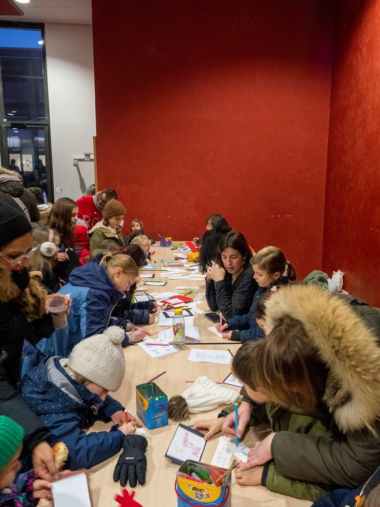 Très joli succès pour cette première édition de la fête de noël organisé par l'APEL pour tous les enfants de maternelle et primaire et leur famille. Chocolat chaud, atelier de création de cartes de noël avec l'Arche, histoires autour de noël, coloriage de personnage pour compléter la grande crèche de l'école, marché de noël, photo avec le Père noël et enfin spectacle "Moonlight" par la Cie Déo.