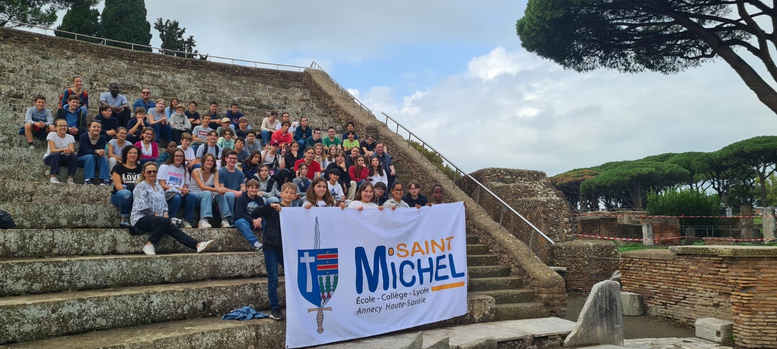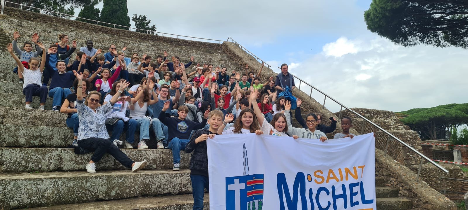Un voyage culturel avec une démarche spirituelle de Rome à Assise du 20 au 26 octobre 2024. Dans une ambiance conviviale, 60 élèves de la 5e à la Terminale découvrent un patrimoine historique et religieux extraordinaire. Le mélange des âges est très riche à vivre par les petits et les grands. Les visites sont commentées par des guides officiels et encadrées par des enseignants et personnels de Saint-Michel.
